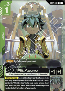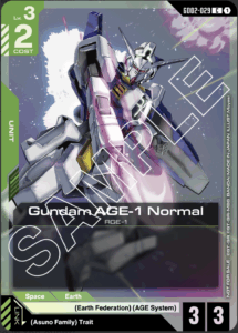 Du 2ème au dernier :– 1 carte GD02-029 “Gundam AGE-1 Normal”– 1 carte GD02-088 “Flit Asuno”