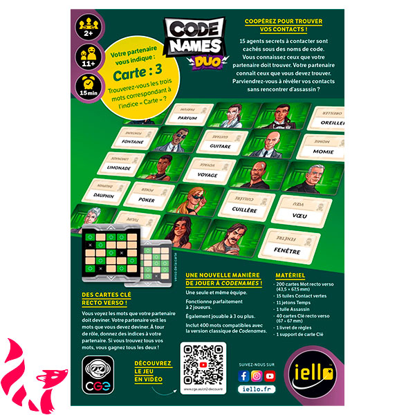 Vous et votre partenaire êtes en mission secrète. Votre objectif : trouver vos 15 noms de code tout en évitant les redoutables assassins qui rôdent.