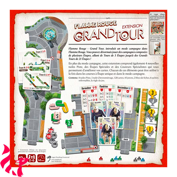 Flamme roue – Grand tour introduit un mode campagne dans Flamme rouge. Vous pouvez désormais jouer des campagnes composées de plusieurs Étapes, allant de Tours de 3 étapes jusqu’à des Grands Tours de 21 étapes !