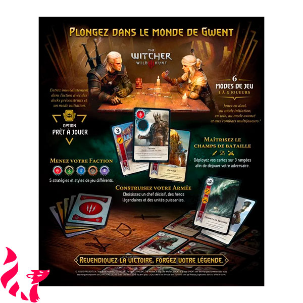 Ce jeu de stratégie et de deck-building vous permet d’incarner l’une des cinq factions emblématiques : Monstres, Empire Nilfgaardien, Royaumes du Nord, Scoia’tael et Skellige.
