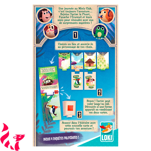 Dans le jeu Le Miniz Club, les enfants plongent dans un univers chaleureux où chaque partie est une nouvelle aventure à vivre ensemble. Le jeu contient quatre historiettes originales, à lire à voix haute, qui font appel à la logique et à la curiosité. Chaque tour consiste à visiter un lieu, y associer un personnage ou un objet, et découvrir si la combinaison permet de révéler une forme et une couleur cachées. Si c’est le cas, l’histoire progresse jusqu’à son dénouement.