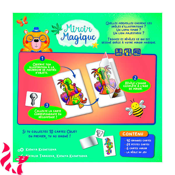 Contenu : 40 grandes cartes, 64 petites cartes, 6 cartes Miroir, livret de règles.