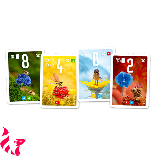 L’extension Flower Power pour le jeu Pixies ne vous permet pas seulement de jouer désormais de 2 à 6 joueurs. Elle vous propose également 2 nouvelles règles : les 14 nouvelles cartes sont de deux couleurs à la fois : la couleur du fond et la couleur de la fleur. Enfin, elles apportent des nouveautés au moment du décompte. Chaque carte face cachée non recouverte rapporte 5 points et même plus grâce à certaines cartes.