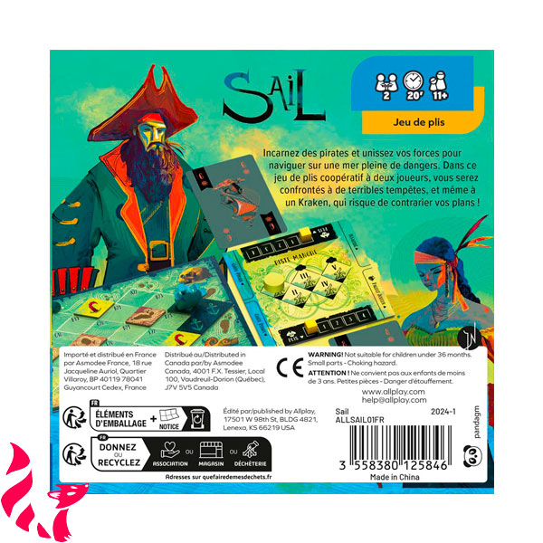 Dans le jeu Sail, votre partenaire et vous devez amener votre navire à l’autre bout du plateau. Il va falloir diriger ce bateau pirate à travers de multiples dangers et être bien coordonnés pour définir ses mouvements. Tout pourrait être simple… mais le défi est de taille car, dans ce jeu coopératif palpitant, la communication est limitée.