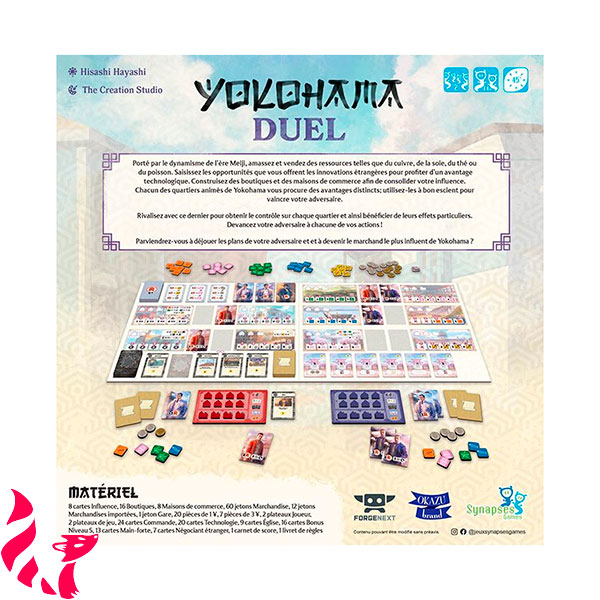 Attendu avec impatience par les amateurs de jeux de stratégie à deux, Yokohama Duo marque le grand retour d’un titre prisé, autrefois une perle rare recherchée par les collectionneurs. Désormais accessible à tous, ce chef-d’œuvre stratégique s’invite sur les tables de jeu du monde entier. La question reste entière : parviendrez-vous à devenir le marchand le plus influent de Yokohama ?